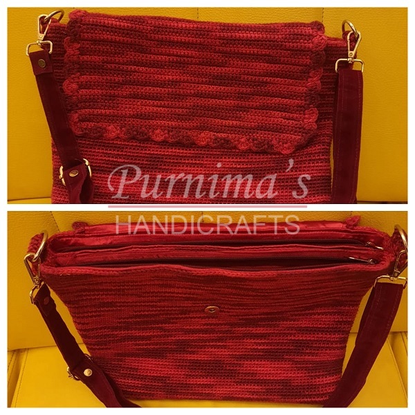 Crochet Double Zipper Bag With A Flap